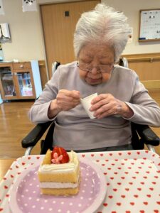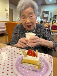 余興の後には、ケーキを召し上がられ五感を使い敬老祭を、楽しむことが出来ました。