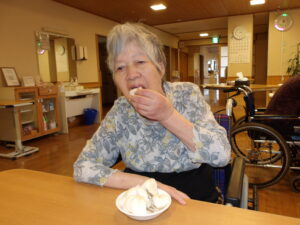 コンビニのレジ横にも中華まんが並ぶ季節になりました。「おやつには出てこないものを提供してみよう」ということで中華まんセレクトを行いました。肉まん、あんまん、ピザまんと用意しましたが「珍しいね~」と以外にもピザまんが人気でした。