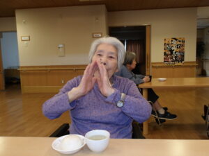 普段なかなか食事が進まない方も「おいしい」と完食して下さいました。笑顔で「ごちそうさん!」と心も体もホットな時間を過ごして頂きました。