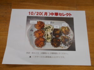 本日の昼食は、中華セレクトでした。 お好きな品を自由に選ばれ、「おかわりくださーい」の声も聞かれ