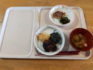 お彼岸の日、昼食におはぎが出ました。