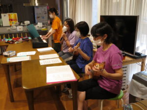 皆様に楽器『鳴子』を持ってもらい、歌に合わせて演奏していただきました。