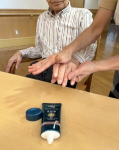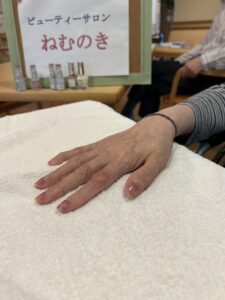 ネイルをした利用者様が私に「見て!見て!」と爪を見せて下さいました。そのことがうれしくお互いに笑っていました。美しさがもたらす自信が他者への幸福感に繋がった瞬間でした。