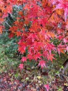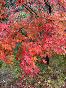 お庭のもみじが、ちょうど陽の光を受けて鮮やかに色づいていたのです。