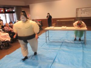 第4種目『職員によるお化粧レース』粉の中にある飴を手を使わずに探す競技、懐かしいですね![]()