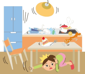 「タンスが倒れてきたり、窓が割れると心配だからそばから離れないと危険だね