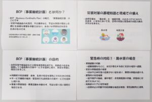 BCPについて学び、実際の訪問日程を想定し机上訓練を行いました。