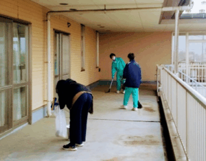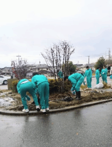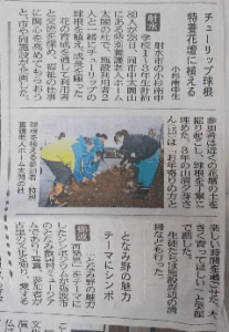 小杉南中学校1~3年生計約80名と、施設利用者2人と一緒にチューリップの球根を植えました🌷