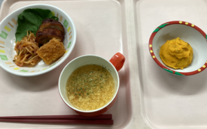 チキンロールとナポリタンやエビカツ、南瓜サラダです!