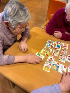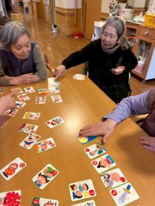 3日には、カルタを楽しまれました。目を光らせ耳を澄ましておられました。「はい、これやね!」と「シュッ」と手が動き終始盛り上がっておられました。