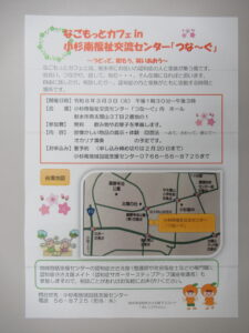 なごもっとカフェin小杉南福祉交流センター「つな~ぐ」を、令和8年3月3日(火)に開催したいと思います。