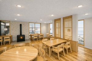 地域の方が気軽に集えるカフェであり、有料老人ホーム「えてら」の入居者が日々の食事を楽しむ食堂でもあります。