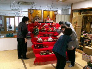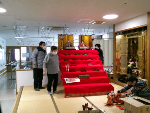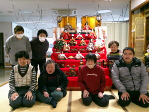 「手をつなぐ育成会」の方々がひな壇飾りにきてくださいました