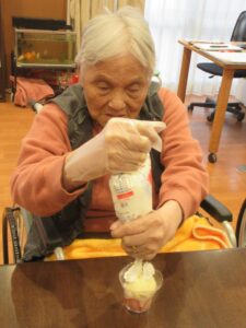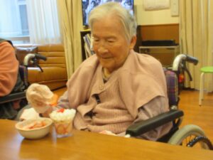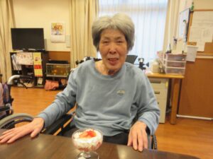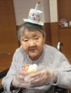おやつ作りの後に2月生まれの方の誕生会を行い、皆様でお祝いしました
