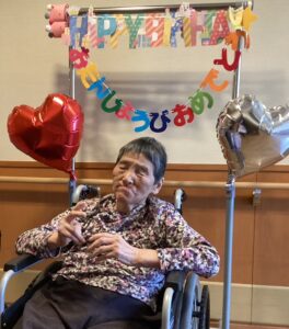 2月、3月生まれの方の誕生会「たこやきパーティー」が開かれました。中に入っているのは「タコ」ではなく、チョコレートや、チーズなど食べやすい物を用意させていただきました。たこ焼きソースではなく、チョコレートソースを使ったりスイーツのような香りでした。皆さん黙々と食べておられ「甘くておしいわ」と好評でした。