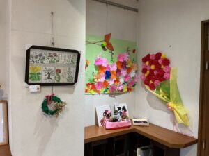 大江苑の利用者様の作品展を今年もニューモンブランで開催しております。利用者様(デイサービス・弐の苑・ヘルパーステーション・小杉・下地域包括支援センター)が趣味や余暇活動で作られた作品です。季節を感じる作品や、個性あふれる力作が並び、会場は明るく温かい雰囲気に包まれています。ぜひ、お立ち寄りご覧ください。