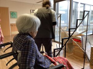 準備しております。時折入居者様から「もうちょっとこっちじゃないけ?」と助言もいただきながら取り組んでおります。また、「きれいやわ」、「懐かしいね」と声が聞こえてきました。