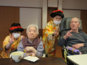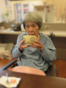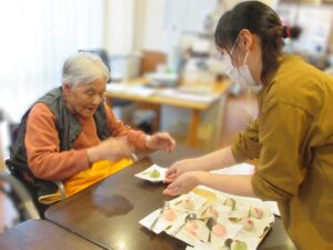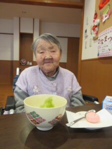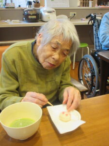 利用者様からは「かわいいお菓子やね」と笑顔が見られ、「お茶美味しかったわ」と嬉しそうな声も聞かれました。和やかな雰囲気の中で会話も弾み、季節を感じながらゆったりとした時間を過ごしていただくことができました。
