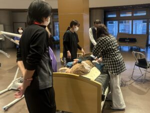 入所者の皆さまがより安心して快適に過ごせるよう、ポジショニング研修を実施しました。
