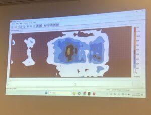 研修では、体圧を可視化できる機器を使用し、ポジショニングの違いによって身体にかかる負担がどのように変わるのかを実際に確認しました。クッションの入れ方や身体の支え方を少し工夫するだけで、体圧のかかり方が大きく変わることを体験的に学ぶことができました。