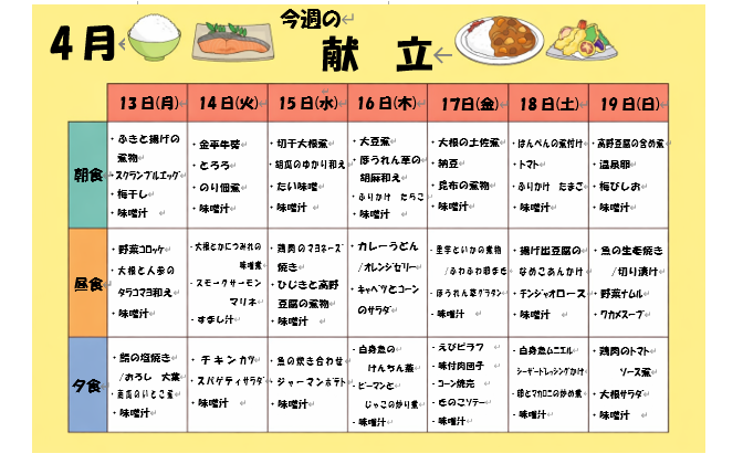 そんなワクワクを大切に今週の献立を掲載しています!!!