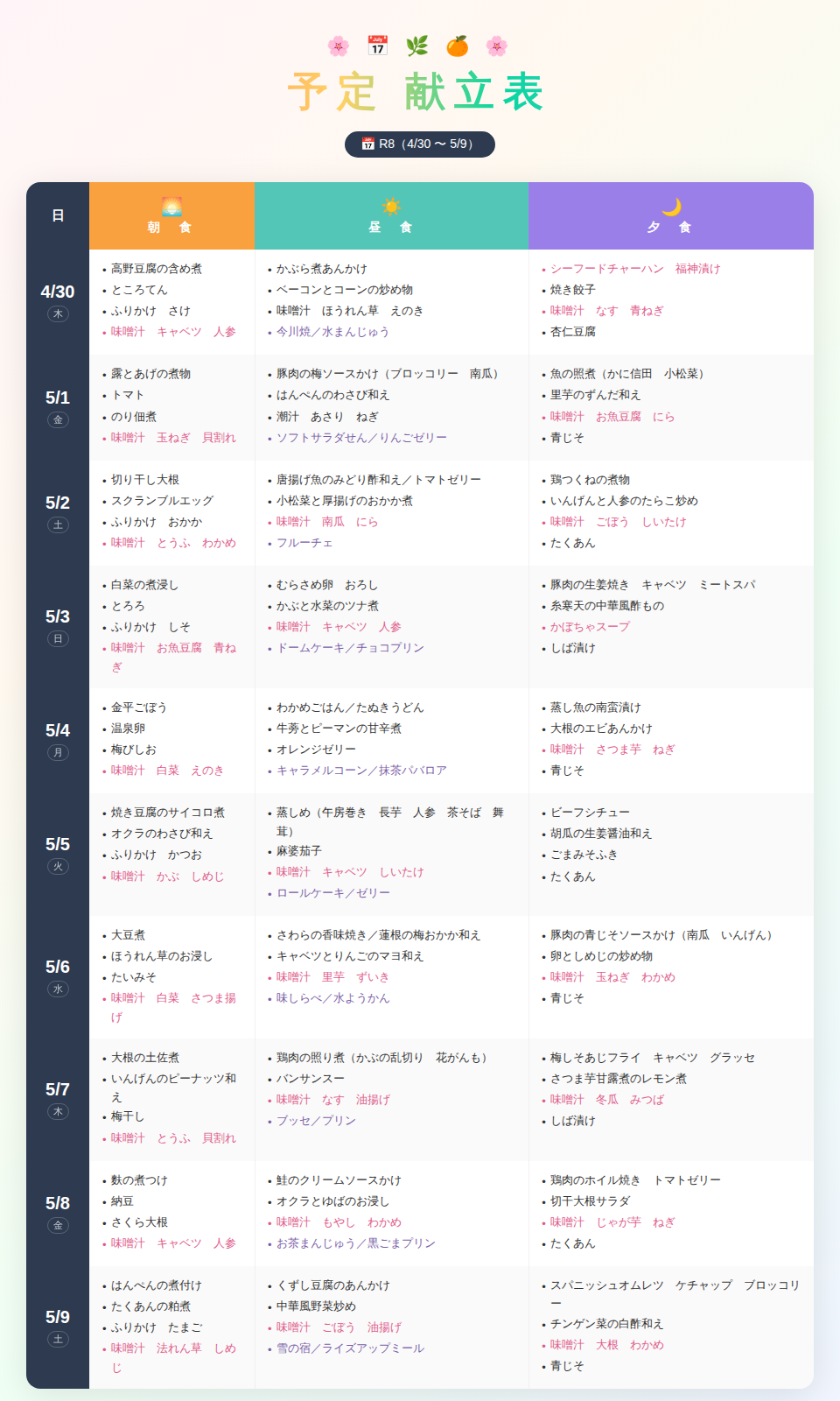 今週の献立