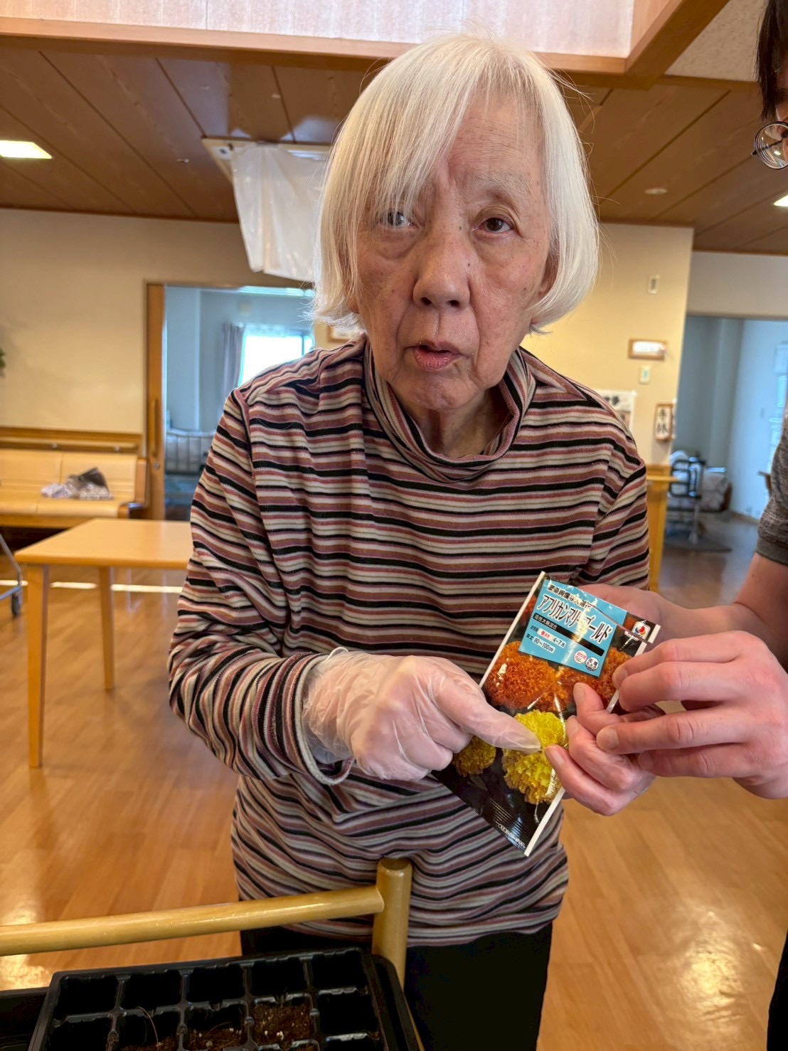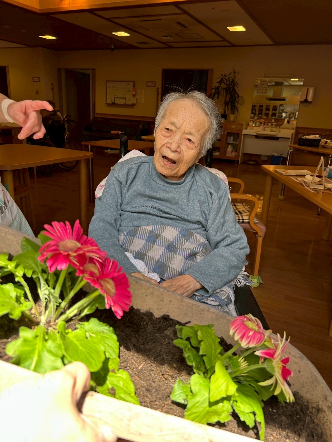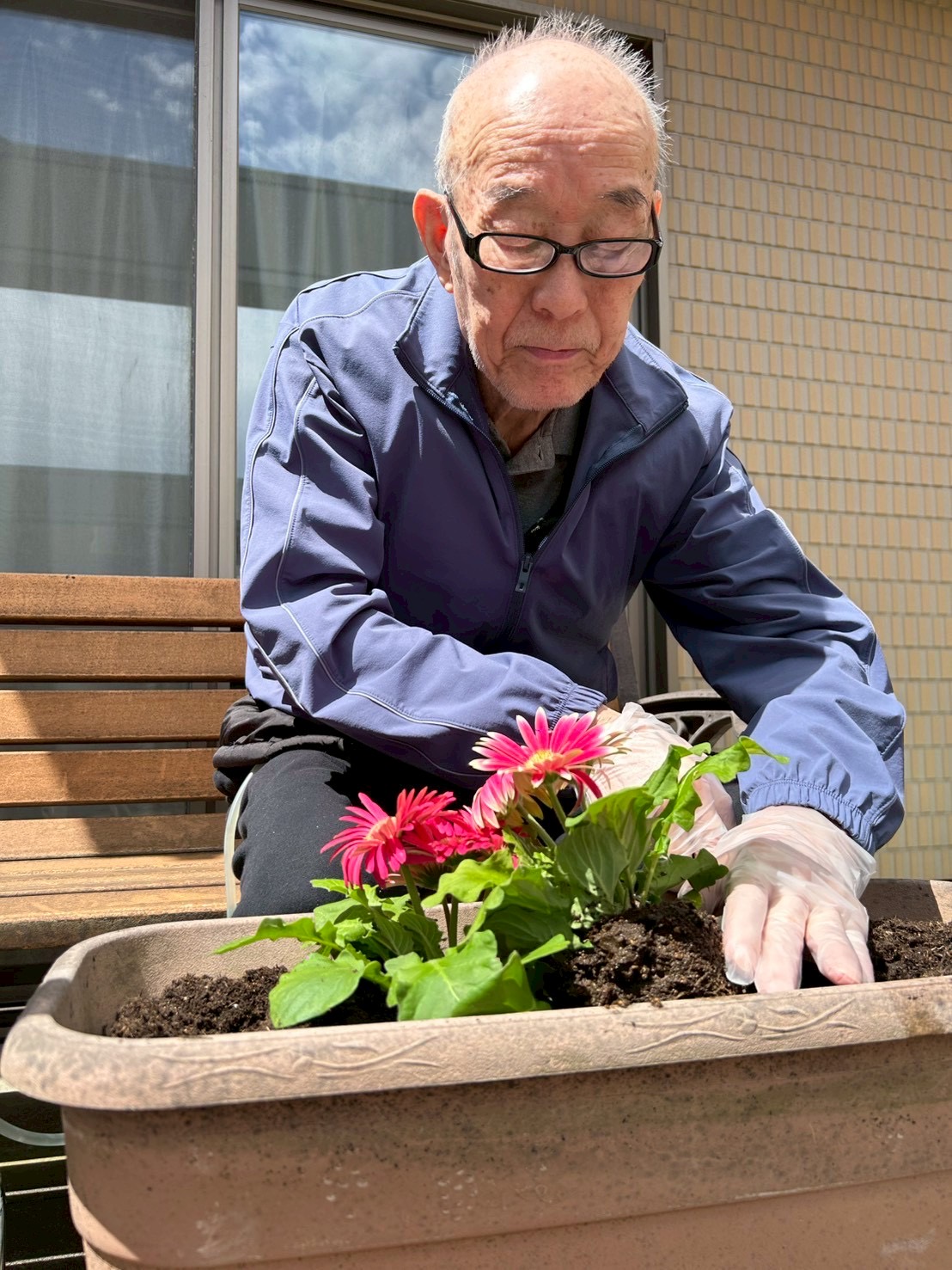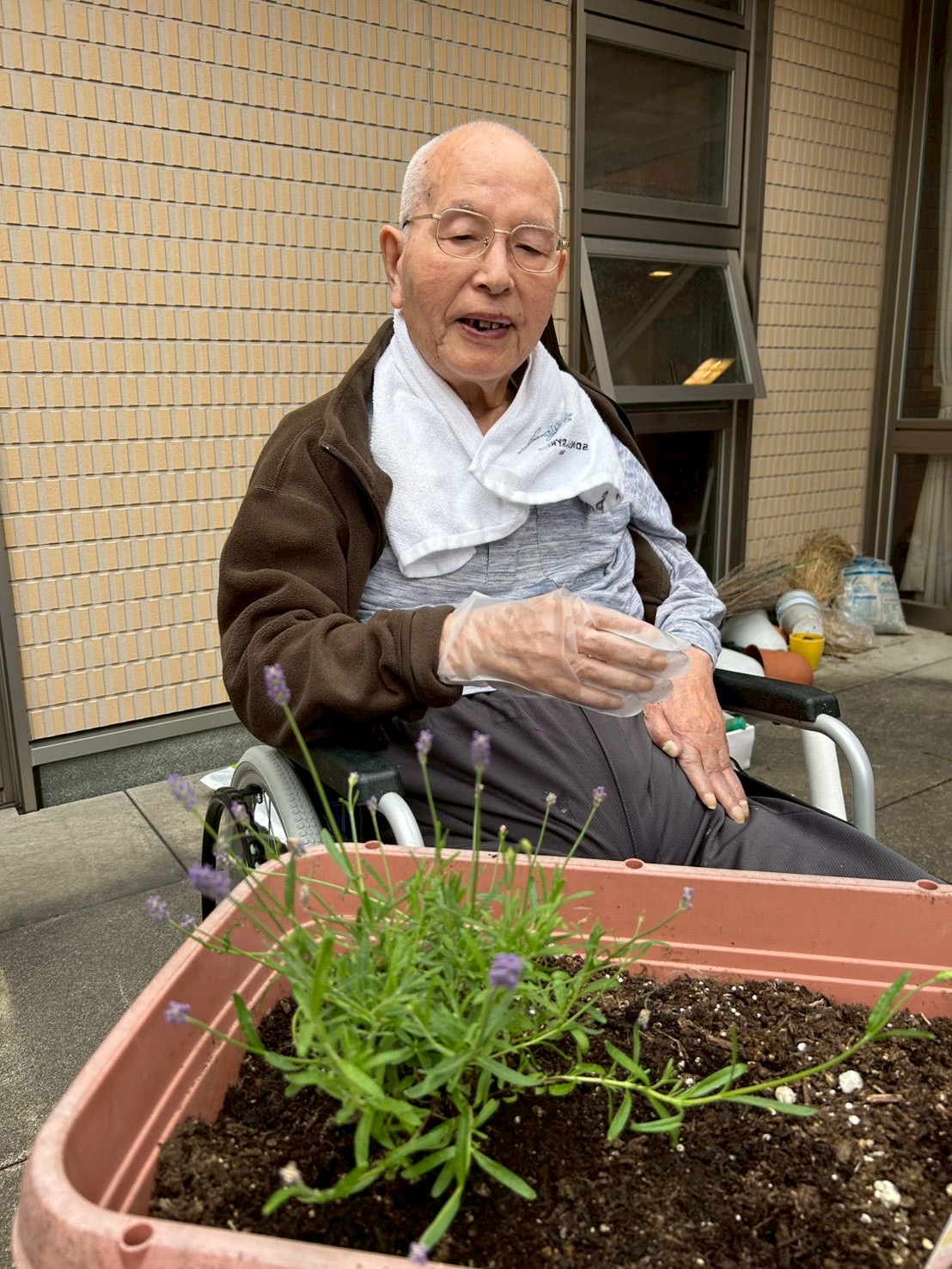 私たちも花や、野菜を育てようと今年も園芸の季節が始まりました。園芸の好きなスタッフや、知識豊富な入居者様に手伝っていただきました。「もっと土いれられ」、「水もっとやらんなんよ」と入居者様から助言をいただき取り組みました。春の訪れを感じる一日となりました