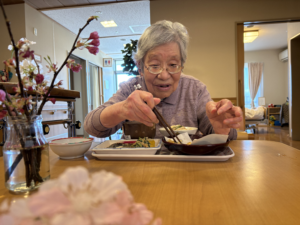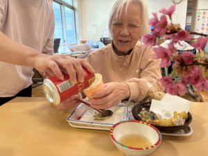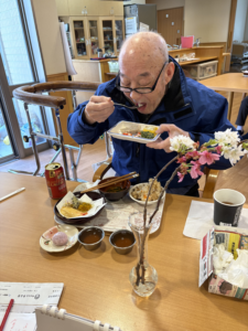 今月は利用者さんたちにお花見御膳を堪能していただきました。