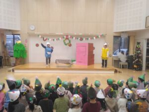 また、保育者からは劇の出し物もあり、劇の途中で、サンタさんが登場!!子どもたちは大喜びでした!サンタさんからプレゼントを受け取り、ニコニコ笑顔で記念撮影をしていました♪