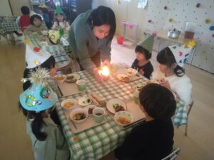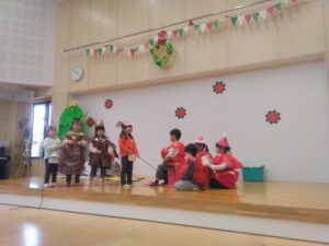 今日は子どもたちが待ちに待ったクリスマス会でした。クリスマス会では年齢ごとの出し物があり、はりきってダンスや合奏を披露していました。