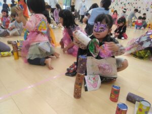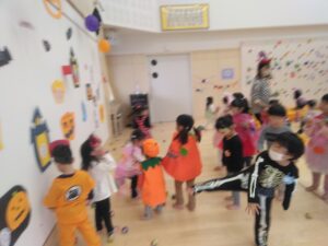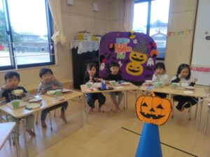 28日にハロウィンフェスがありました。10月に入ってから、飾りを作ったり、仮装用の衣装を作ったりと、準備を進めてきました。 当日、自分で作った思い思いの衣装を身につけて、グループに分かれて、いろいろなゲームを楽しみました。昼食とおやつは遊戯室で食べて、この一日は、ハロウィンを思う存分楽しみました。